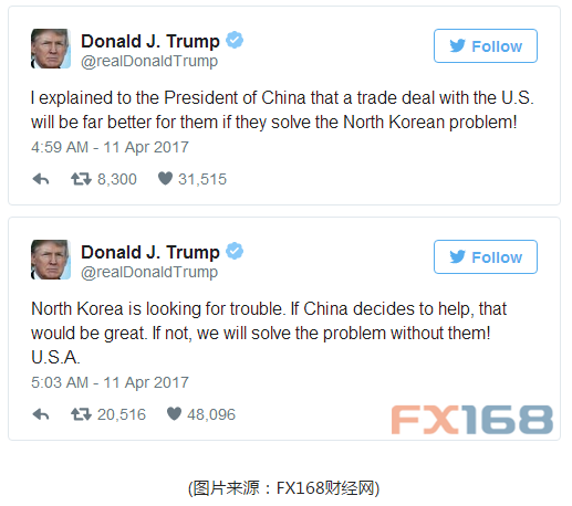 據彭博報道,周二早些時候,美國總統特朗普推文稱,要是中國不在朝鮮問題上采取行動美國就要“單干”。
