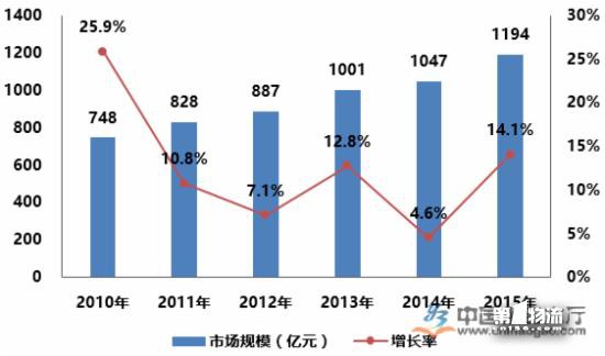 受到零售、食品、冷鏈物流行業等發展影響,2010-2015年,中國商用冷鏈市場保持著不斷增長的態勢,但是受到宏觀經濟和市場需求波動等不穩定因素的影響,增長率有較大幅度的波動。